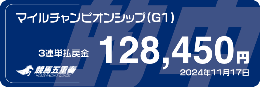 | 馬単 | 15-6 | 払戻金870円 | マイルチャンピオンシップ(G1) ※ボックス購入の結果 |