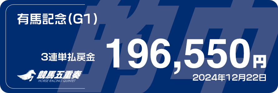 | 馬単 | 8-10 | 払戻金2,280円 | 朝日杯フューチュリティステークス(G1) ※ボックス購入の結果 |
